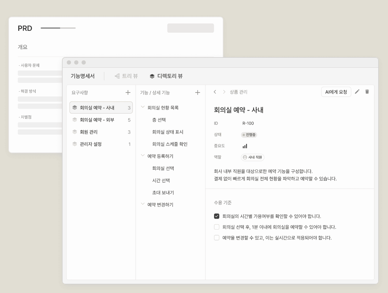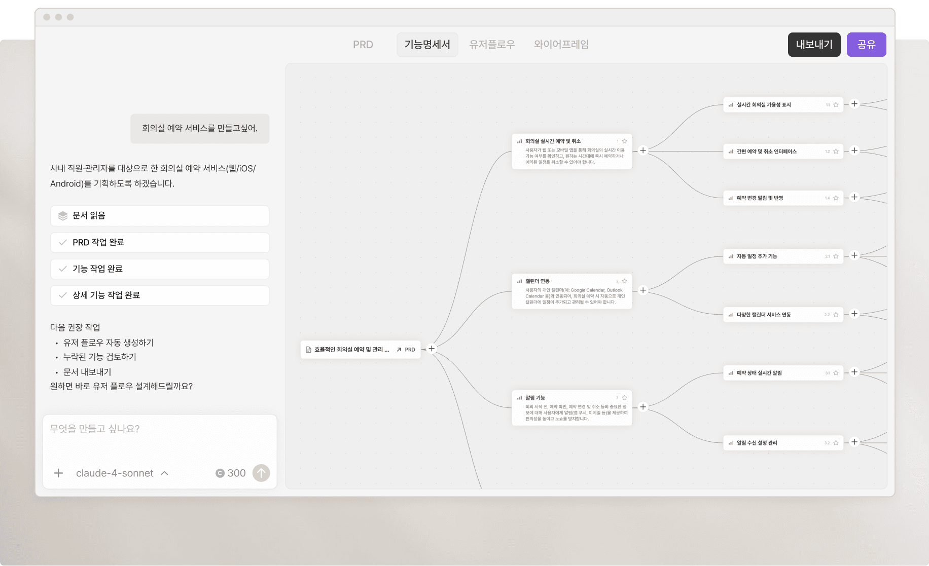 AI가 기능명세서와 유저 플로우를 자동으로 생성하고,