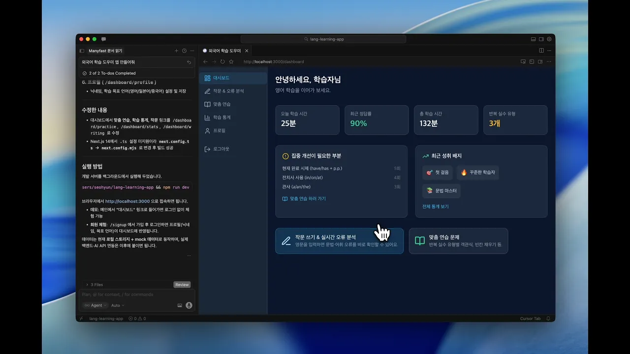 <Cursor에서 매니패스트의 문서를 읽어 프로토타입을 구현하는 과정. 출처: 매니패스트 캡쳐>