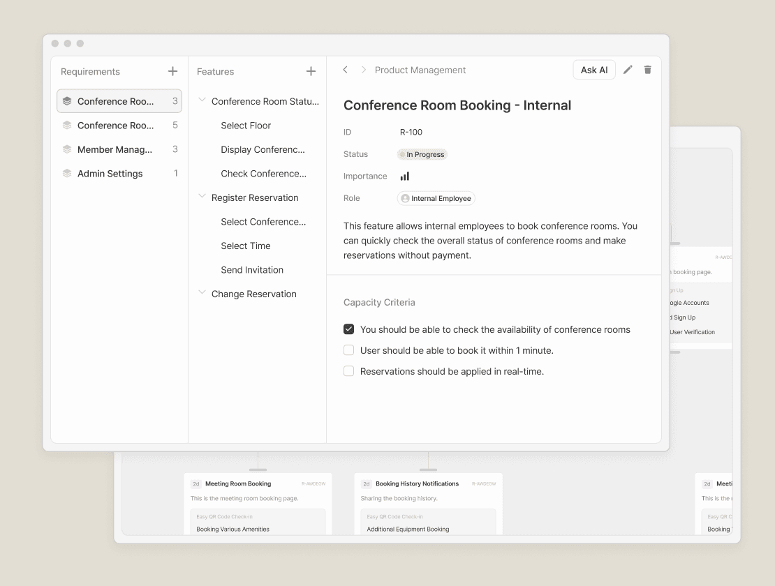 Define features and structure in minutes. Build a clear information architecture to keep your team aligned and minimize revisions with interconnected docs.