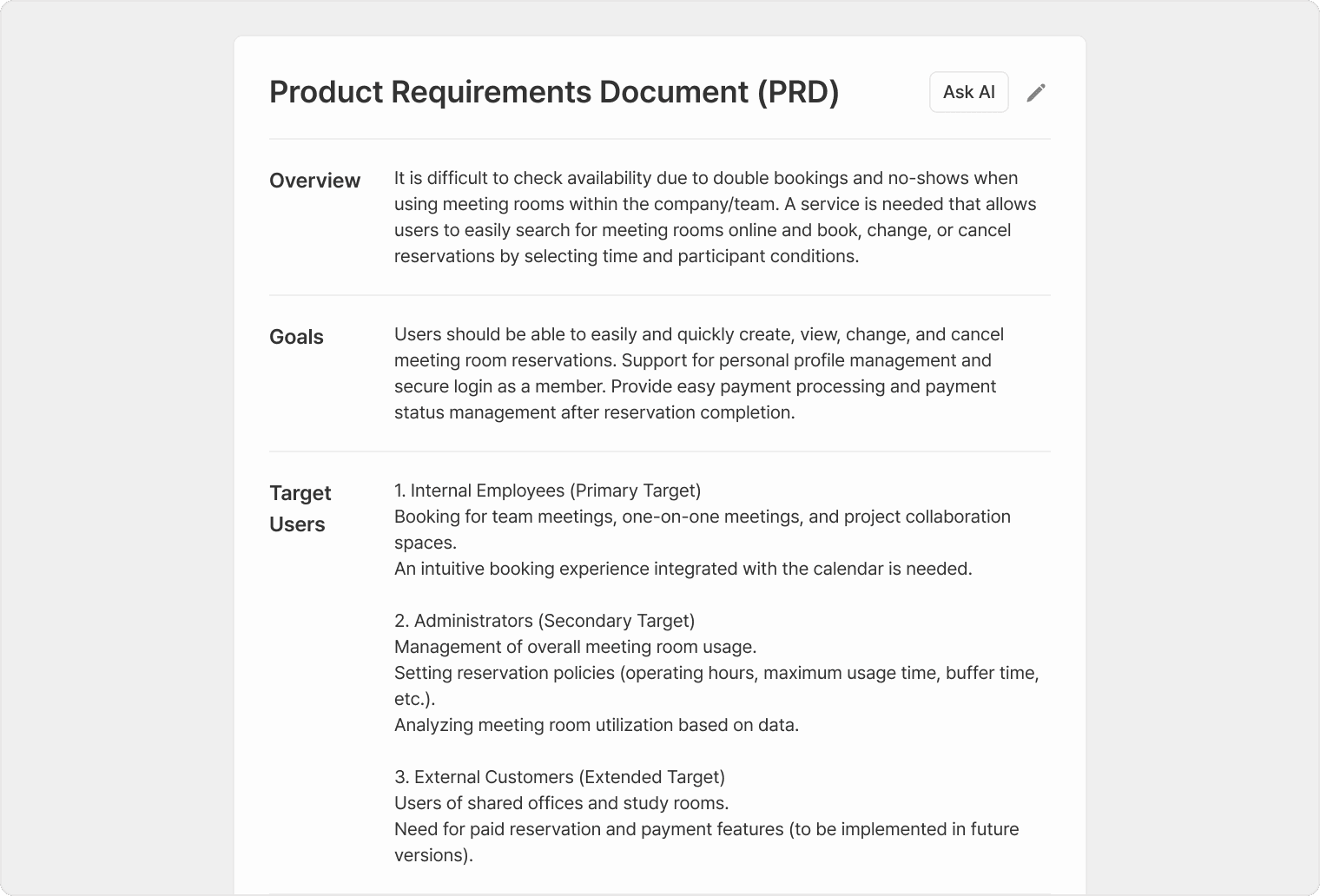 teams short on planners.Just inputting keywords produces pro-level specs. It’s a perfect fit for small teams. I’ve even recommended it to our developers to try.